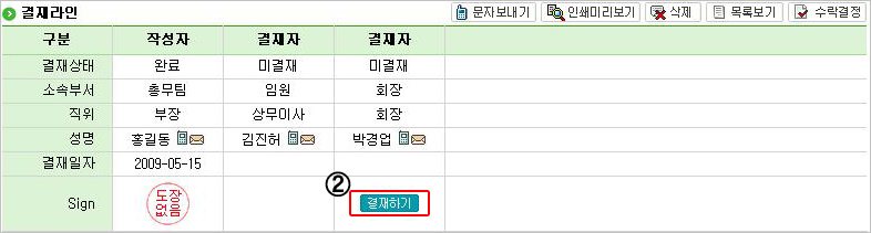 결재함 사용은 다음과 같은 따라해 보세요. |