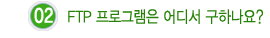 홈페이지 자료를 호스팅 계정에 올리려면 FTP 프로그램이 필요합니다.FTP란 File Transfer Protocol의 약자로 원격지에 있는 서버와 사용자 간의 자료를 전송하기 위한 프로토콜입니다. 따라서 FTP를 이용하면 내 컴퓨터에 있는 자료를 홈페이지가 운영되고 있는 서버로 올릴 수도 있고 서버에 있는 자료를 내 컴퓨터로 내려받을 수도 있습니다.